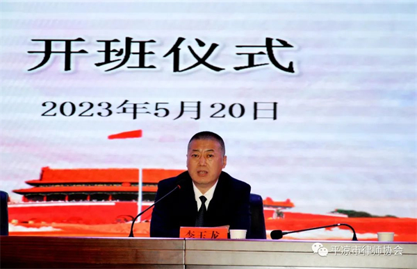 5月20日-5月21日由甘肃省律师协会主办、平凉市律师协会承办的2023年度平凉市律师业务培训会在平凉市惠民大厦召开,平凉市司法局党组成员、副局长,市律师行业党委书记李玉龙出席开班仪式并讲话,平凉市律师协会会长陈国忠主持。