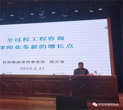 本次培训以律师实务为主,邀请了平凉市委党校(行政学院)副教授沈学文讲授《以中国式现代化全面推进中华民族伟大复兴——二十大会议精神解读》,北京大成(兰州)律师事务所合伙人、高级合规师付毅讲授《内外兼修双管齐下——律所和律师信息化建设的途径和方法》,甘肃天旺律师事务所主任、全省优秀律师麻天旺讲授《中华人民共和国法律援助法》解读,甘肃金城律师事务所副主任赵鸿岳讲授新时代企业合规法律服务——以《中央企业合规管理办法》为视角、做好新时代企业合规法律服务,北京德恒(兰州)律师事务所律师李慧讲授《民法典》婚姻家庭编司法解释(一)重点问题解读,甘肃隆建律师事务所主任、甘肃省优秀律师周万发讲授《全过程工程咨询,律师业务新的增长点》,甘肃聿凰律师事务所(嘉峪关)律所主任王晓雯讲授《青年律师——你也可以很老道》,甘肃省律师行业党委委员、甘肃省律师协会副会长、甘肃合睿律师事务所主任王金贵讲授《律所和律师如何形成专业化和品牌化优势》。