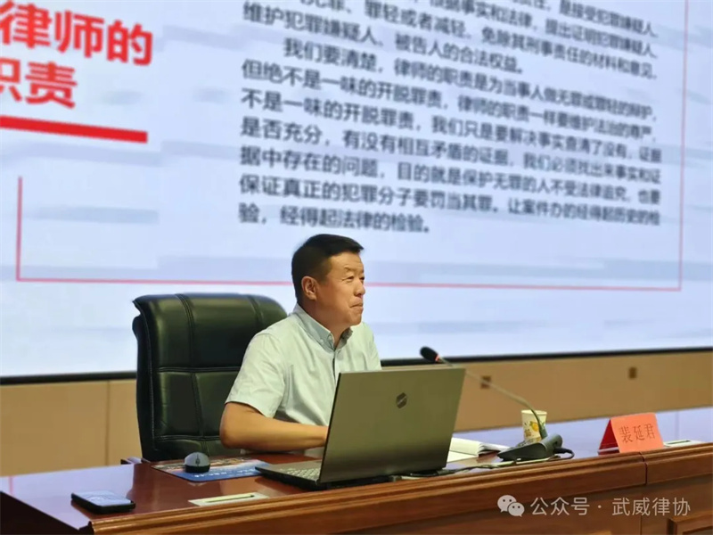 上午9时,武威市司法局律师和法律职业资格管理科科长、中共武威市律师行业党委副书记樊志军首先带来"政治理论学习"专题课程。樊科长深入浅出地讲解了新时代律师行业党建工作的新要求,引导律师们坚定理想信念,强化责任担当。