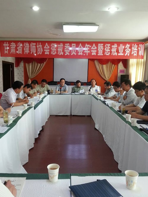 2014年6月12日,甘肃省律师协会惩戒委员会2014年年会既惩戒工作业务培训会在酒泉市召开。参会人员除省律协惩戒委员会委员及省律协秘书处相关工作人员外,十五个市、州司法局和律师协会负责该项工作的代表及酒泉市律师协会惩戒委员会委员和酒泉市律师事务所主任共计35人参加了会议。