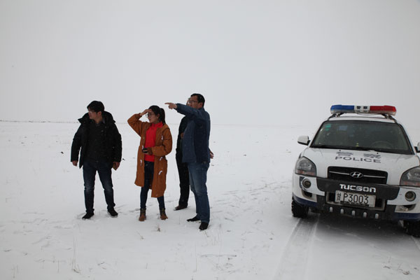 在玛曲草原,花君随司法局工作人员下乡,普法遇上大雪封路找不见路是常有的事