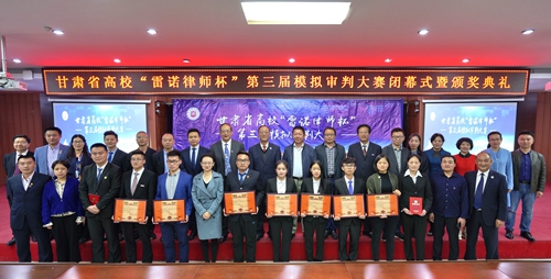 以“弘扬法治精神 铸就法律人才”为主题的第三届甘肃省高校“雷诺律师杯”模拟审判大赛5月10日下午在甘肃政法学院明法讲堂闭幕。