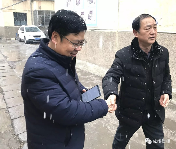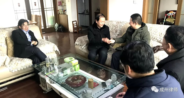 2019年1月10日,大雪纷飞,寒风刺骨。省律师协会秘书长张维武同志,冒着严寒专程来成县慰问了耄耋之年的张启宗律师和年近古稀的刘克信律师,给他们带来了冬日的问候。