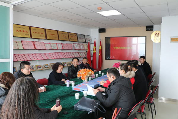 2019年1月10日上午,省律协党委专职副书记年发苗一行首先莅临甘肃法翔律师事务所调研了甘肃法翔律师事务所党支部的党建工作开展情况并召开座谈会。经翻阅党建材料并与法翔所党员交流,充分肯定了甘肃法翔律师事务所党支部在党建工作标准化建设上的成果,同时也提出了基层党支部在会议记录中对会议名称的记录应符合规范等要求。