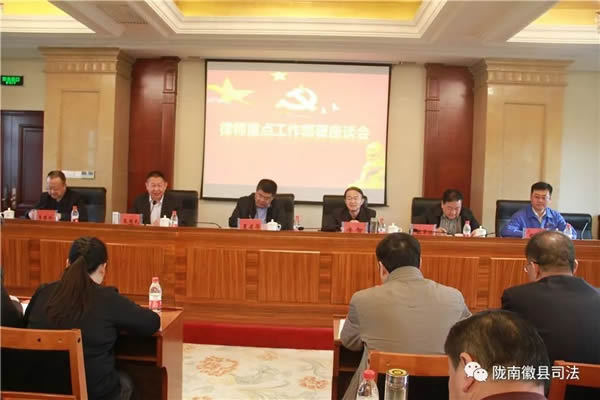 为进一步深化律师制度改革,推进律师行业发展,助力全省脱贫攻坚和法治甘肃建设,4月11日,甘肃省2019年律师重点工作部署座谈会在徽县召开?;嵋橛墒÷墒π崦厥槌ふ盼渲鞒?。