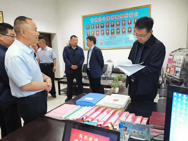6月21日,省司法厅党委委员、副厅长、省律师行业党委书记韩世峰,省律师行业党委副书记、省司法厅律师工作处处长李智,省律师行业党委委员、省律师协会秘书长张维武一行,深入甘肃北斗律师事务所、拓原律师事务所、陇凤律师事务所、龙泽律师事务所,调研庆阳市律师行业党的建设和律师工作发展状况。庆阳市委常委、副市长杨守金,庆阳市司法局党组书记、局长马文哲,庆阳市司法局党组成员、副局长、庆阳市律师行业党委书记刘志杰等陪同调研。