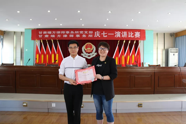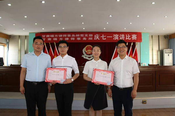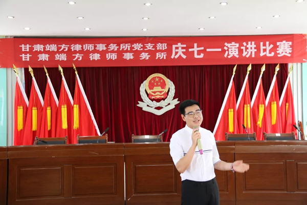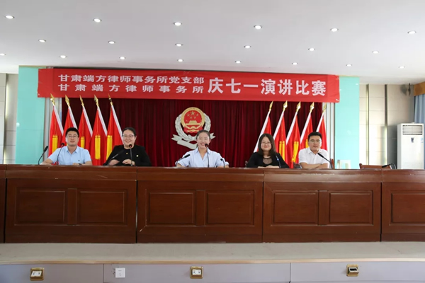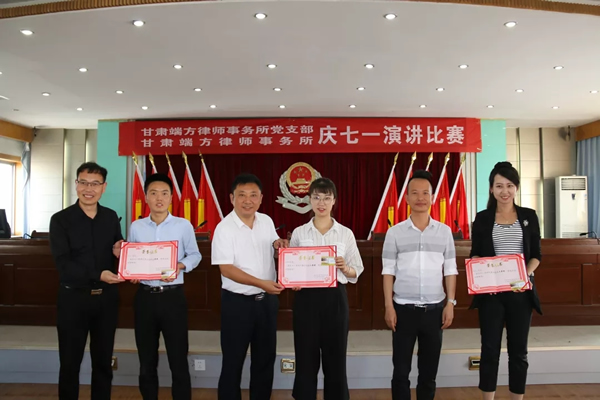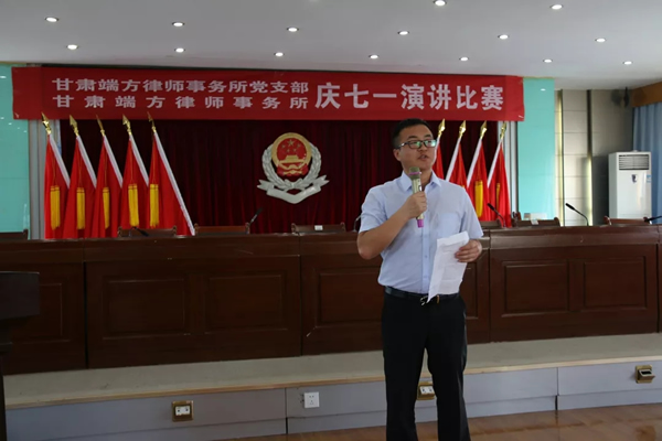 为隆重纪念中国共产党建党98周年,深入贯彻落实习近平新时代中国特色社会主义思想和党的十九大精神,甘肃端方律师事务所党支部于6月29日下午,组织律所党员和律师们举办了“迎七一——初心与使命”主题演讲比赛。