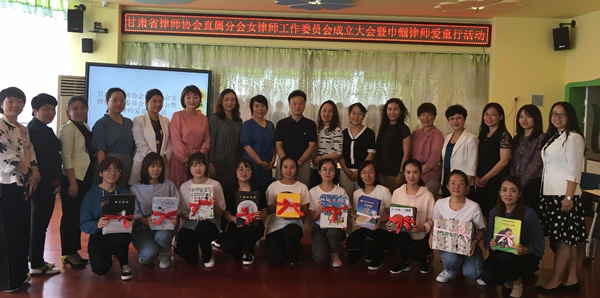 8月24日下午,甘肃省律师协会直属分会女律师工作委员会召开成立大会暨巾帼律师爱童行活动。甘肃省律师协会直属分会赵耀会长、张小娟副会长应邀出席会议。女工委主任靳雯、秘书谢芸、杨燕及十余名委员参加了本次会议。