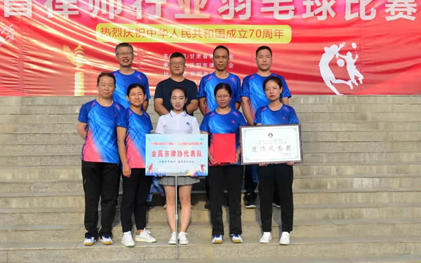 9月8日下午,甘肃律师行业庆祝中华人民共和国成立70周年羽毛球比赛在庆阳体育馆圆满闭幕。庆阳市司法局局长马文哲、副局长刘志杰,省律协副会长赵耀、田顺舟、刘吉颖,庆阳律协会长吕民国出席闭幕式并为获奖律协代表队颁奖。省律协秘书长张维武主持闭幕式。
