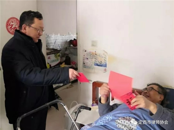 1月17日,正值农历传统小年,省律师行业党委专职副书记年发苗、省律师协会副会长王祖国一行2人代表省律师行业党委、省律协来定西慰问老律师,为老律师带来党的关怀和新春的祝福,定西市律师协会会长袁振林陪同慰问。