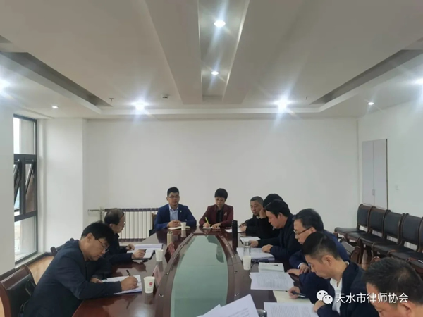 实地检查结束后,督查组在天水市司法局开展汇报会,天水市律师协会班子成员、天水市司法局律师工作科所有人员参加,天水市司法局处级领导干部曹辉主持会议,会上,曹辉就就天水市律师行业重点工作落实情况作了汇报,围绕全市律师行业党建水平和执业水平,坚持围绕中心、服务大局,紧扣业务抓党建,以党建促所建,专项整治、法律援助、脱贫攻坚、法律七进、扫黑除恶、疫情防控等重点工作得到较好落实。并对行业党委存在的问题以及下一步工作作了安排。