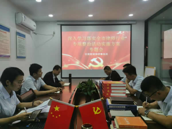 为有效落实《全市律师行业专项整治活动实施方案》精神,根据市律师行业党委、市律师协会的安排,甘肃陇域律师事务所于2020年8月20日下午15时召开了深入学习落实全市律师行业专项整治活动实施方案专题会。