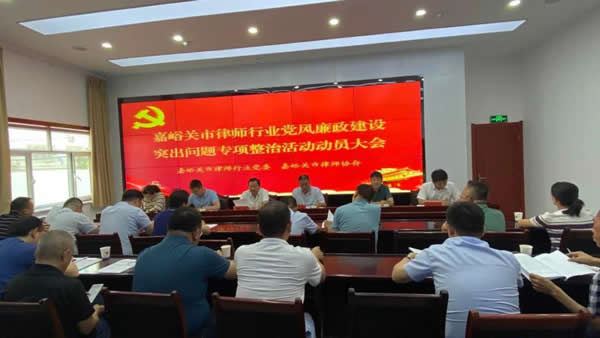 8月24日,嘉峪关市律师行业党委召开党风廉政建设突出问题专项整治暨作风建设动员会,嘉峪关市纪委派驻司法局纪检组组长郝孟秉同志,嘉峪关市司法局党委成员、副局长、嘉峪关市律师行业党委书记郑浩同志出席会议,嘉峪关市司法局律师工作科人员,嘉峪关市律师行业党委委员、嘉峪关市律师协会会长、副会长、秘书长,各党支部书记及各律所主任20余人参加会议?;嵋橛杉斡厥新墒π岣被岢?、秘书长许阳主持。