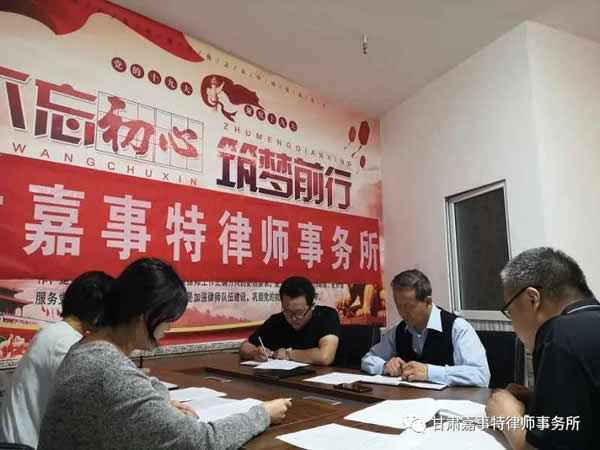 甘肃嘉事特律师事务所主任田家明释明了本次专项整治活动的重要性,宣布会议的三项议程,安排部署了甘肃嘉事特律师事务所下一步贯彻落实专项整治活动的具体计划?;嵘下伤魅翁锛颐髀墒Υ烊墒η┦稹堵墒Τ信凳椤?,以上述通知及承诺书内容为标准,自查自省,并形成律所、个人自查报告及整改清单。