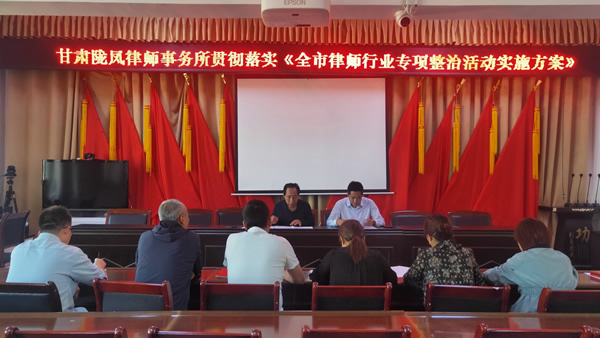 会议要求,甘肃陇凤律师事务所全体律师要认真学习律师行业专项整治活动精神,并严格按照省市律师行业专项整治活动的安排部署,贯彻好、落实好。要恪守职业道德和执业纪律,始终坚持依法执业,诚信执业、规范执业,弘扬律师行业新风正气,提升人民群众满意度。